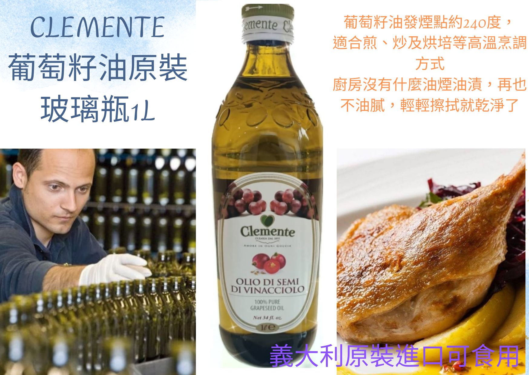 CLEMENTE葡萄籽油原裝瓶 1L